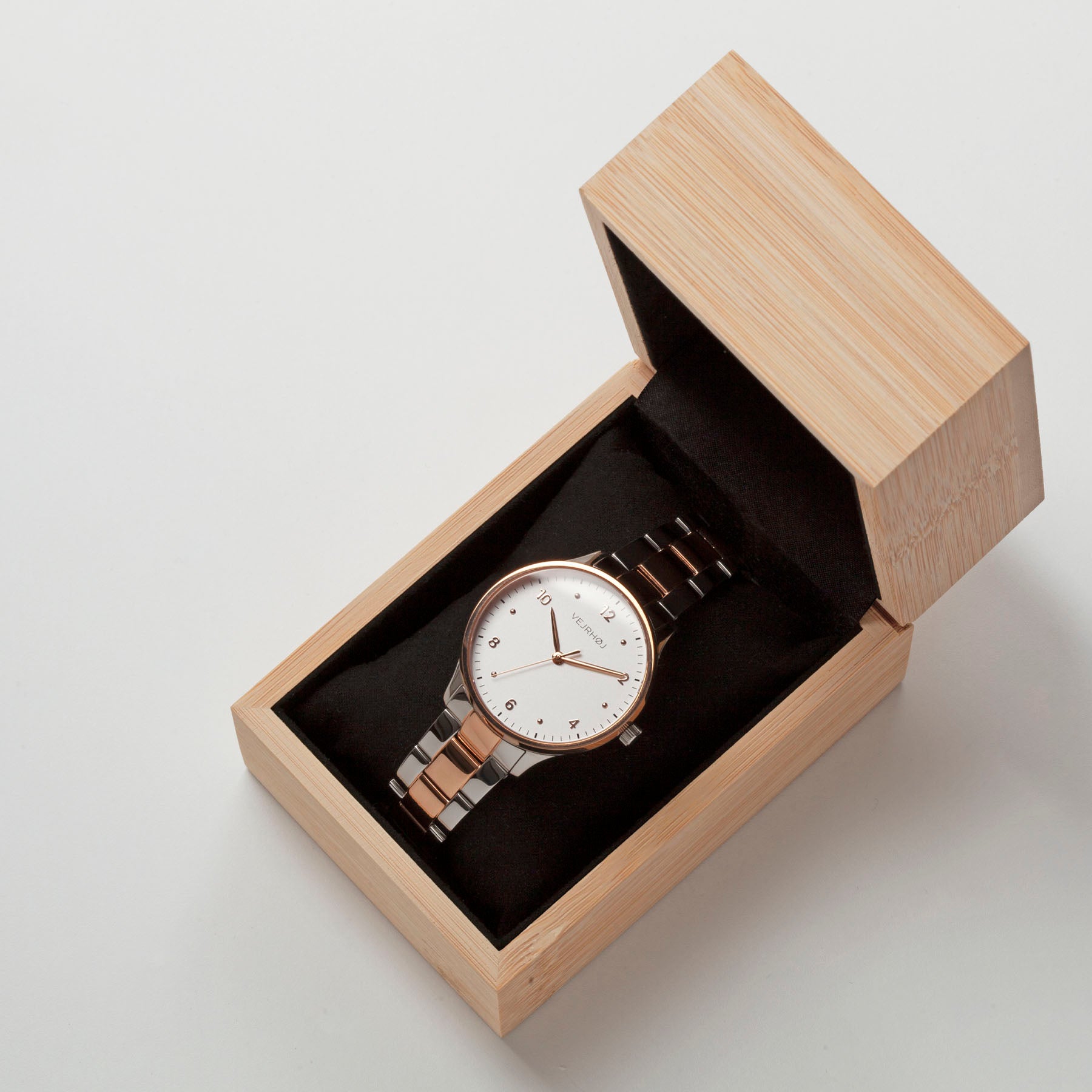 VEJRHØJ Petite Royal Rose, minimalist design combination color watch in eco-friendly bamboo packaging